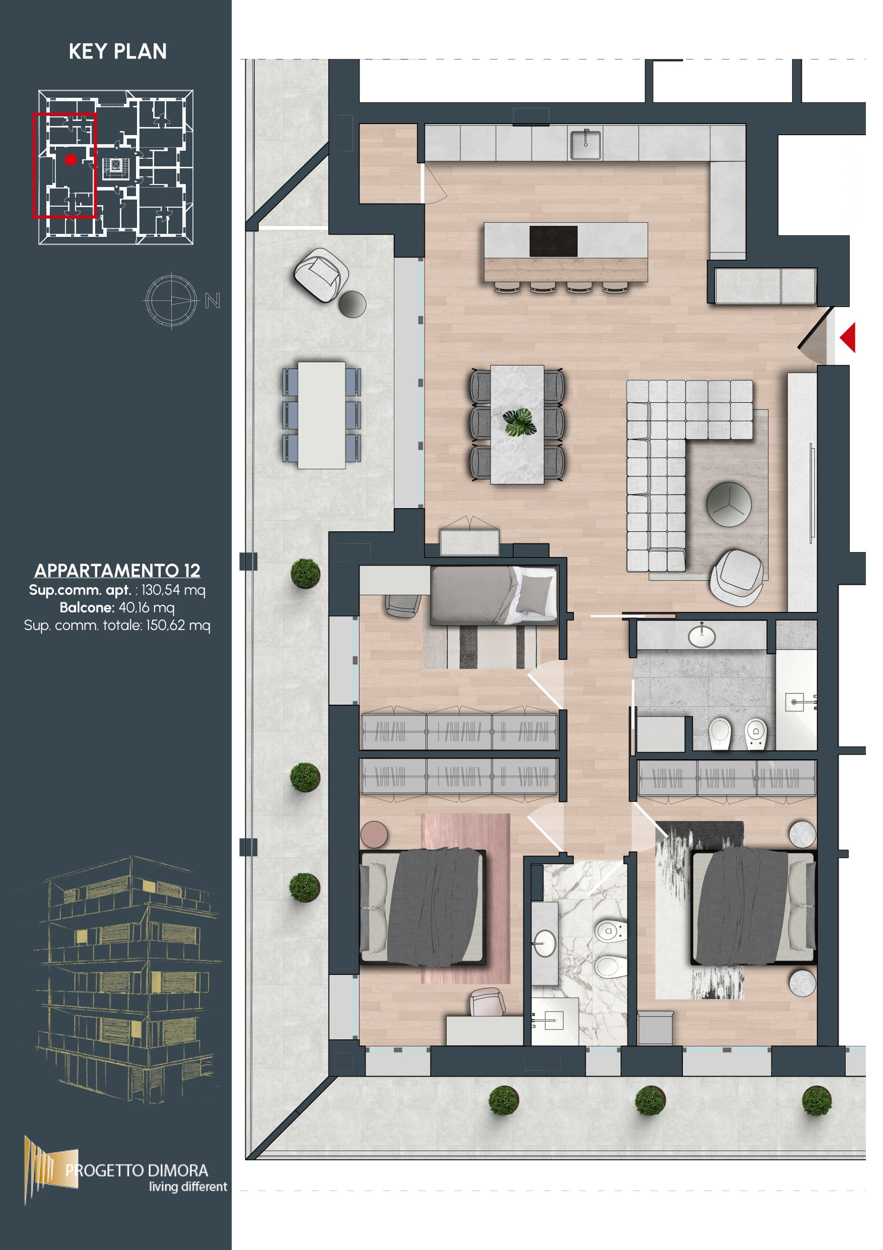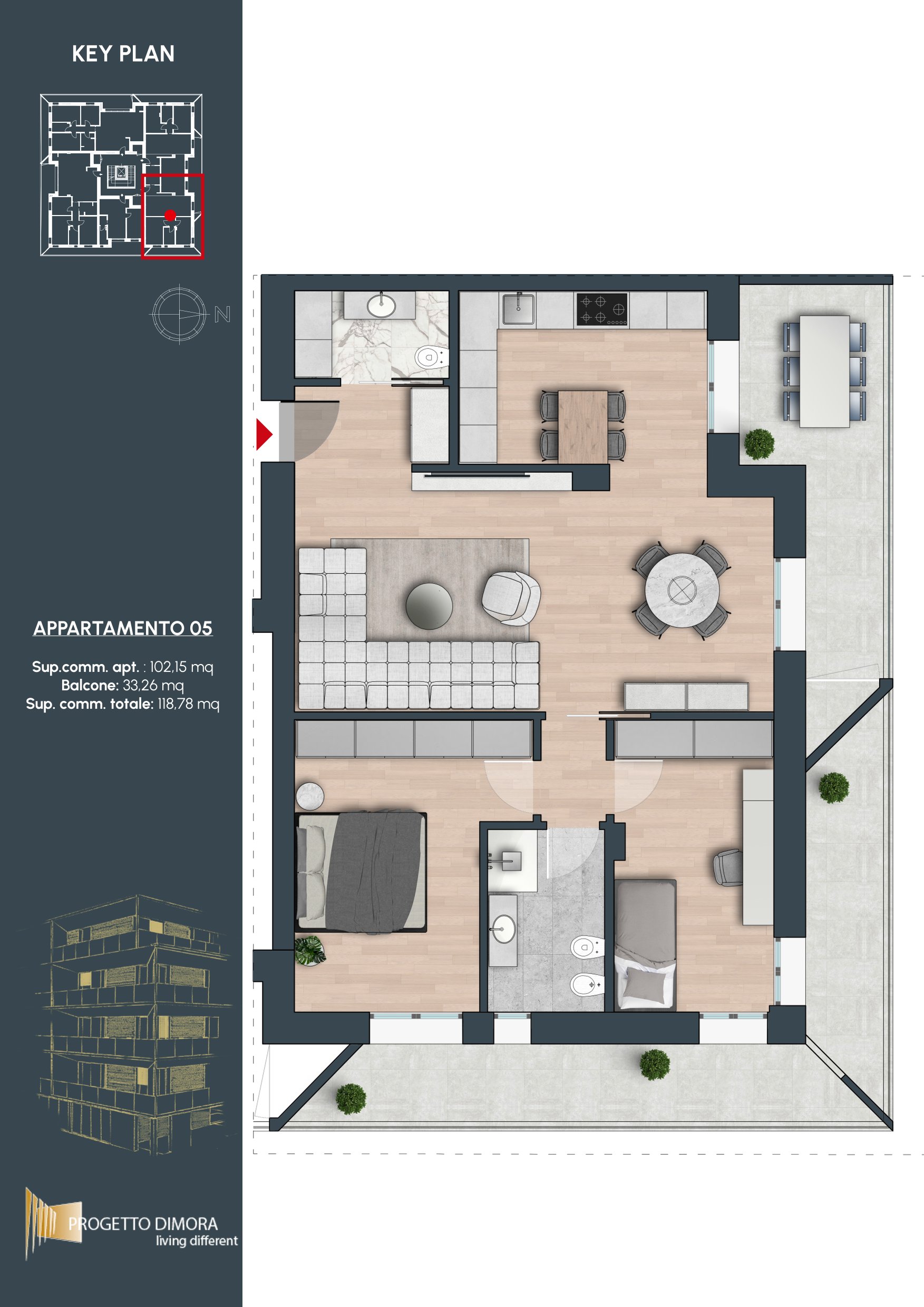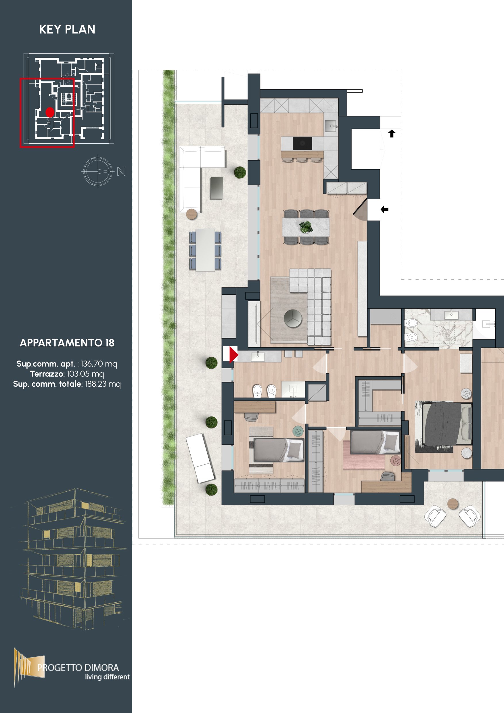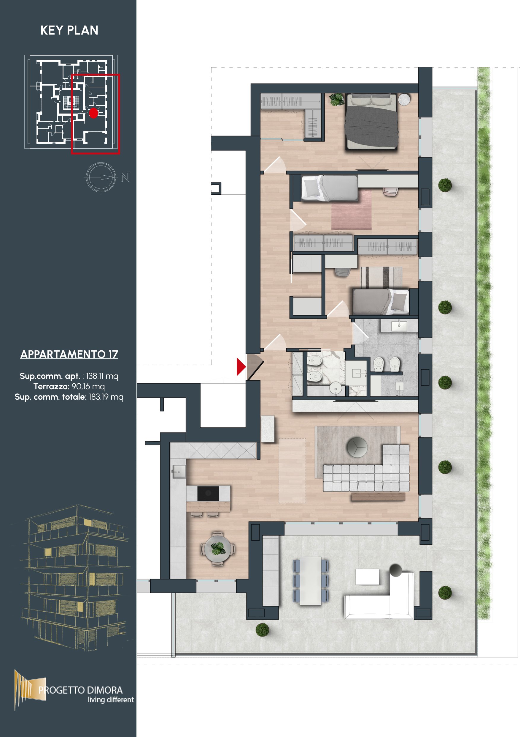 Gli interni di questa residenza sono progettati per offrire spazi versatili e dal carattere moderno, in cui ogni elemento riflette cura e raffinatezza. Le pregiate finiture selezionate dal capitolato arricchiscono l’eleganza degli ambienti, concepiti per garantire un equilibrio ideale tra comfort e funzionalità. La disposizione degli spazi è studiata per soddisfare le necessità della vita quotidiana, offrendo un’esperienza abitativa capace di adattarsi e valorizzare chi la abita.